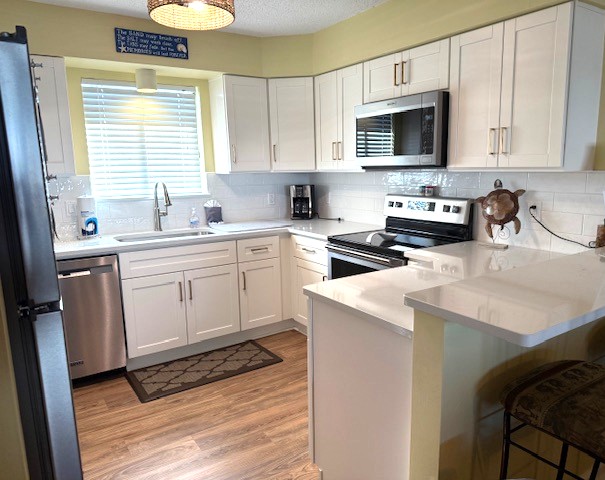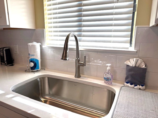 Kitchen - Completely remodeled! Well stocked, brand new refrigerator w/ice maker, microwave, electric stove, dishwasher, deep sink, coffee maker, toaster, blender, electric can opener